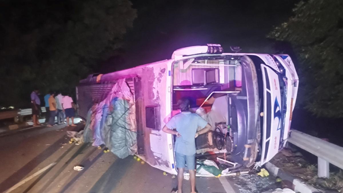 On information, police rushed to the spot. Fire and Rescue Services personnel brought the passengers consisting of 11 men, 11 women and a child out of the bus. Ambulances rushed them to Dindigul Government Medical College Hospital.