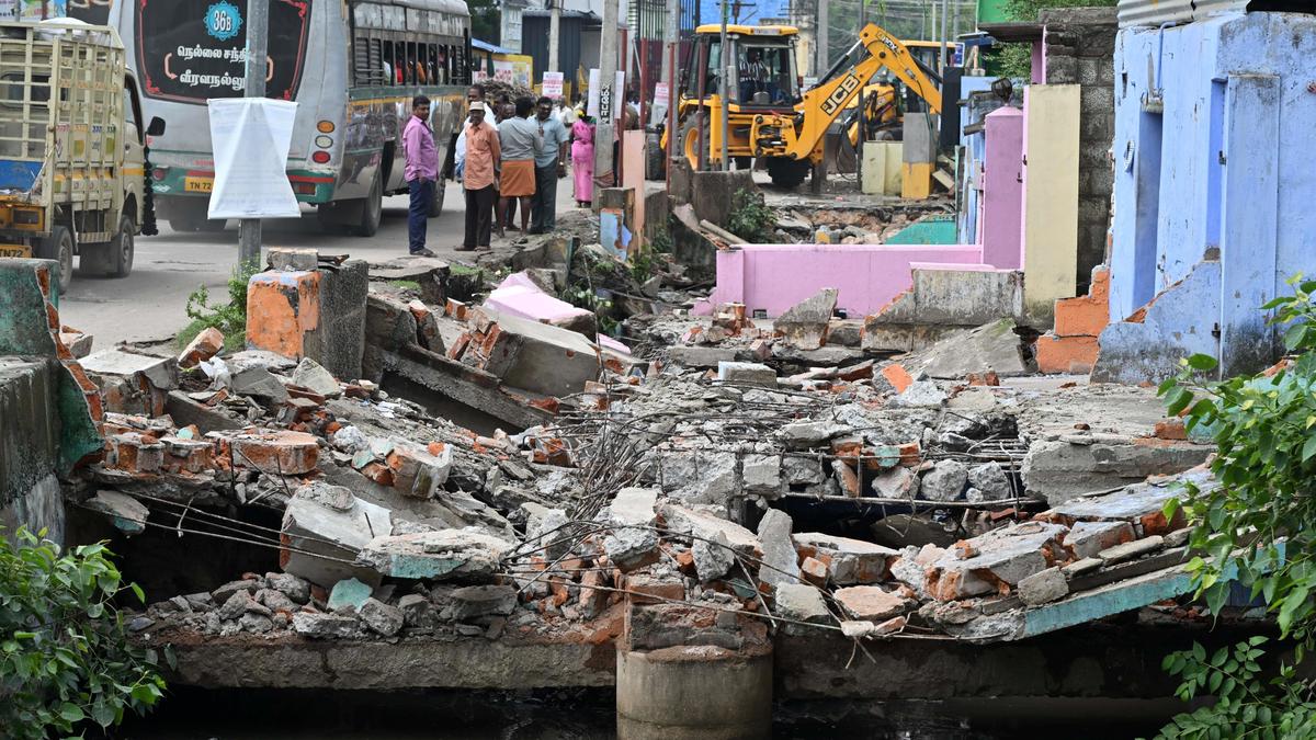 There were total of 55 buildings including several houses, commercial establishments and four marriage halls, situated on the other side of Madhar Khan Vaikkaal, a distribution channel of Nainarkulam, along South Mount Road in ward 27 of Tirunelveli Corporation. Hence, owners of the buildings had built small bridges across the 15-foot-wide waterway to connect South Mount Road and their buildings. For some of the buildings, it was the only way to reach their buildings from South Mount Road.
