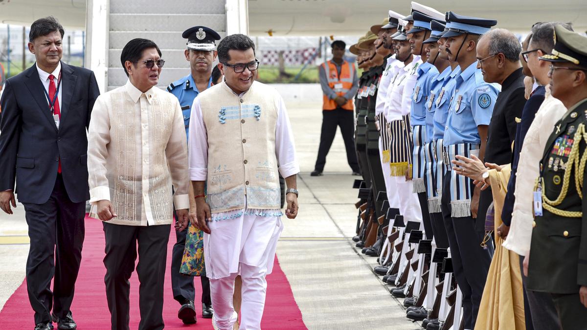 In this image via PIB on Aug. 4, 2025, Philippines President Ferdinand Romualdez Marcos Jr. being received by Minister of State for External Affairs Pabitra Margherita upon his arrival, in New Delhi. Photo: PIB via PTI Photo