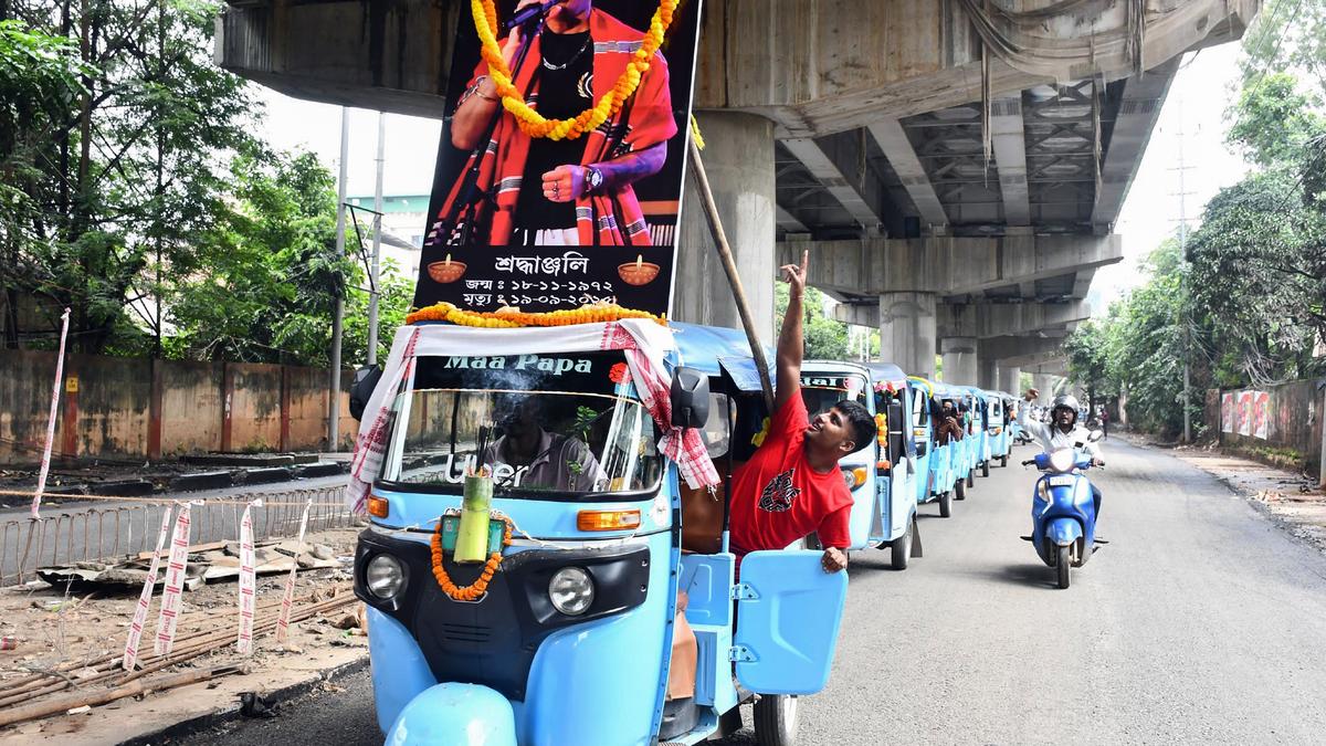 Fans take out E-rikshaw procession to pay respect to late Assamese singer Zubeen Garg, in Guwahati on Saturday.