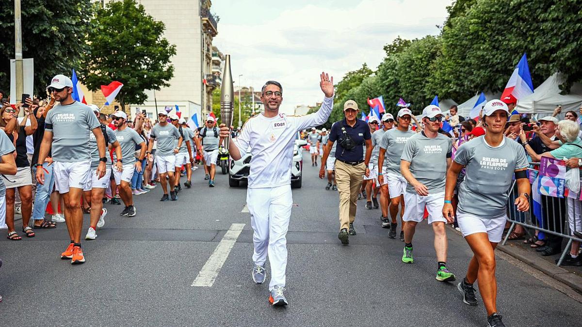 Olympic gold medallist Abhinav Bindra carries the Olympic flame in the Paris 2024 Torch Relay. File