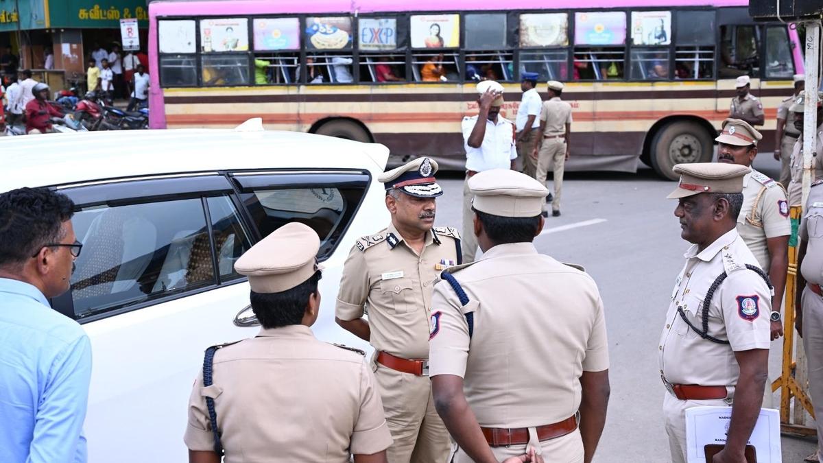 Acting Director General of Police, G. Venkatraman, reviewing security arrangements in Madurai on Sunday.