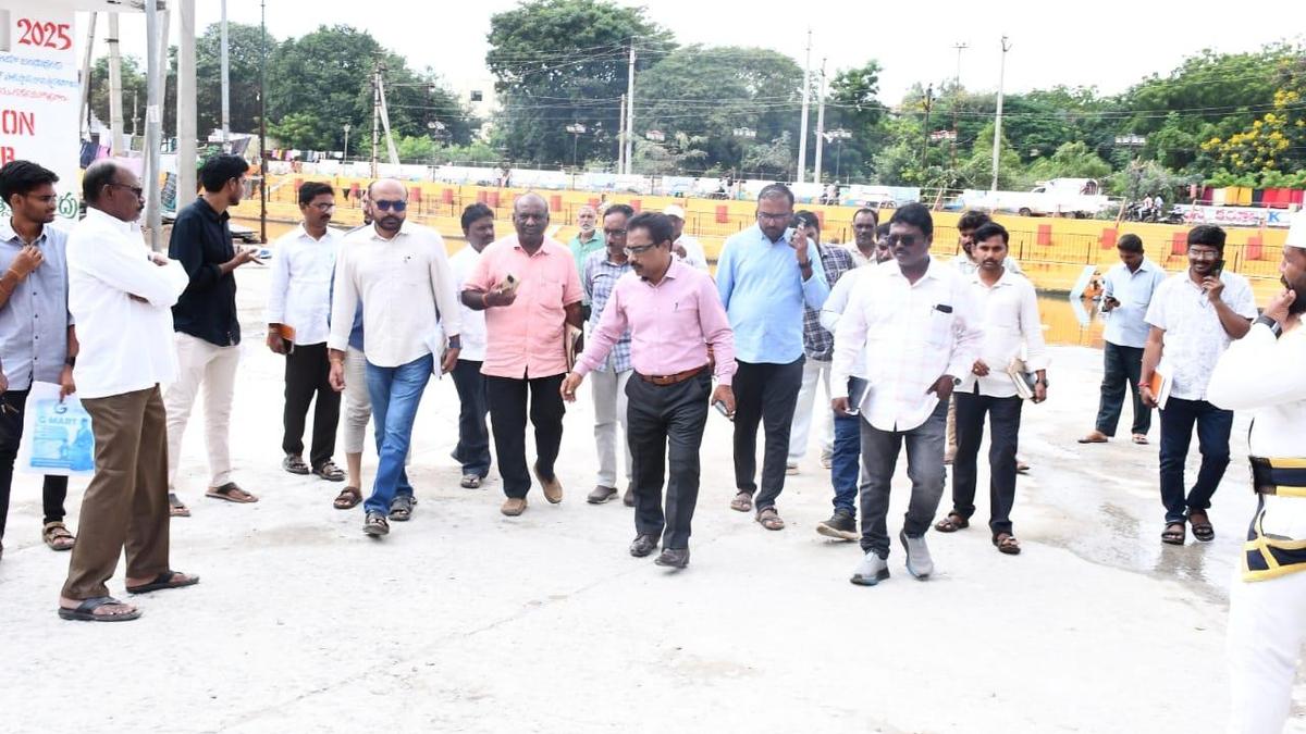 Kurnool Municipal Corporation Commissioner P. Viswanatha inspecting the arrangements for ’Karthika Pourami’ festivities at Vinayaka Ghat, in Kurnool in Tuesday.