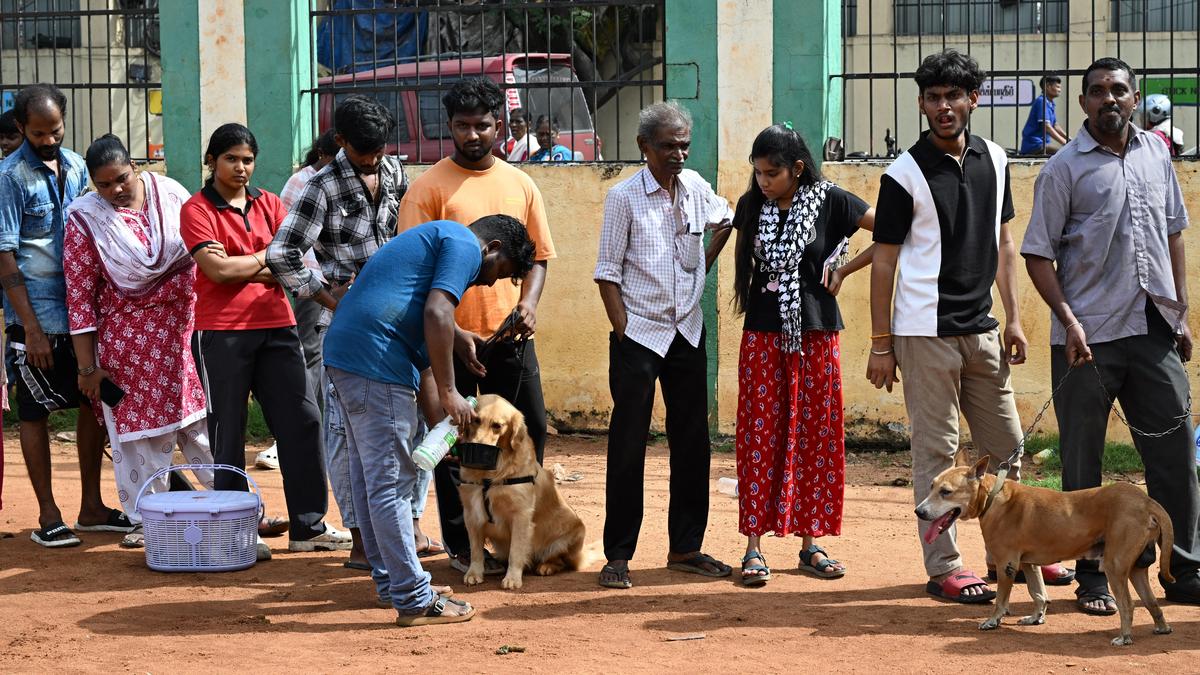 Pet owners queued up Corporation ground near the ABC centre Pulianthope on November 23, 2025.
