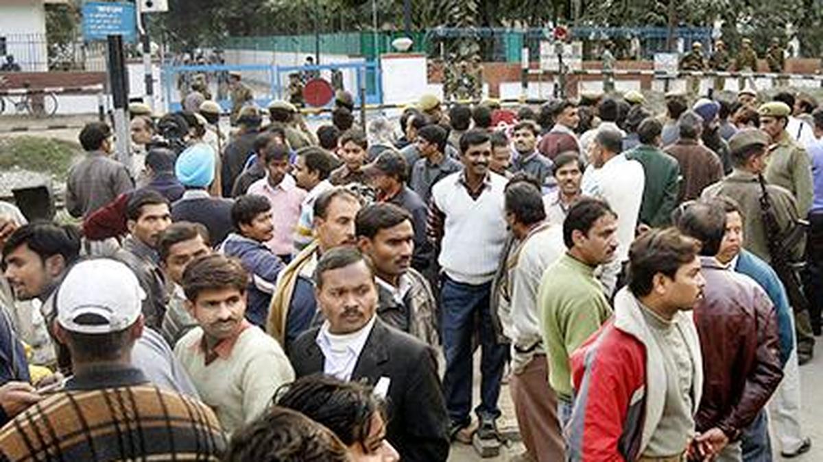 Onlookers stand near a CRPF camp, which was attacked in Rampur. Uttar Pradesh on January 1, 2008.