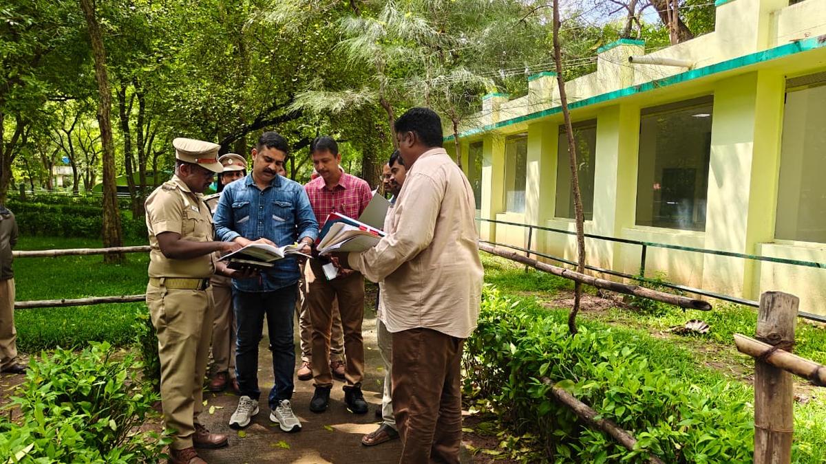 T. Ritto Cyriac, Director, Arignar Anna Zoological Park (AAZP), Vandalur, inspecting Amirthi Zoological Park in Vellore. The District Forest Officer (DFO), T.K. Ashok Kumar, is also seen.
