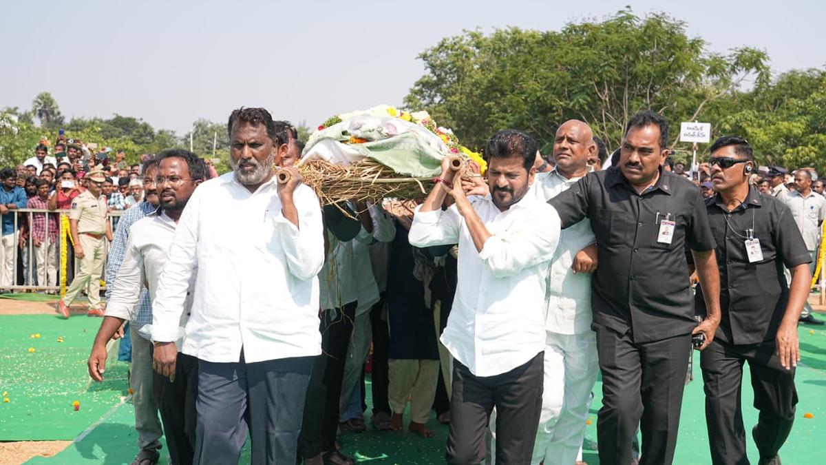Renowned poet and lyricist Andesri’s funeral was held in Ghatkesar on Tuesday (November 11, 2025). Telangana Chief Minister A. Revanth Reddy, SC Welfare Minister Adluri Laxman Kumar and other Ministers were among the pallbearers.
