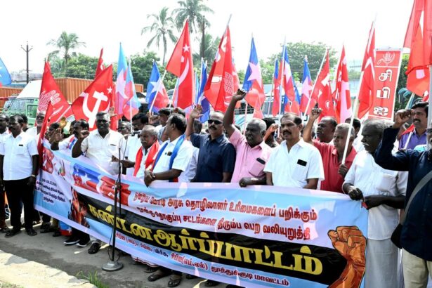 Cadre of Left parties and VCK staging a demonstration in Thoothukudi on Monday. | Photo…