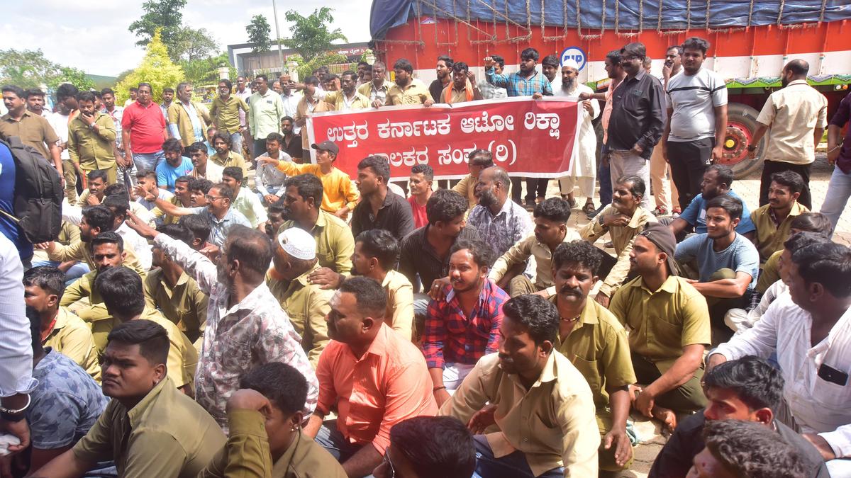 The auto drivers and owners were led by Shekharayya Mathapati, president of Uttara Karnataka Auto Rickshaw Drivers Association, and K.M. Santosh, president of Auto Federation.