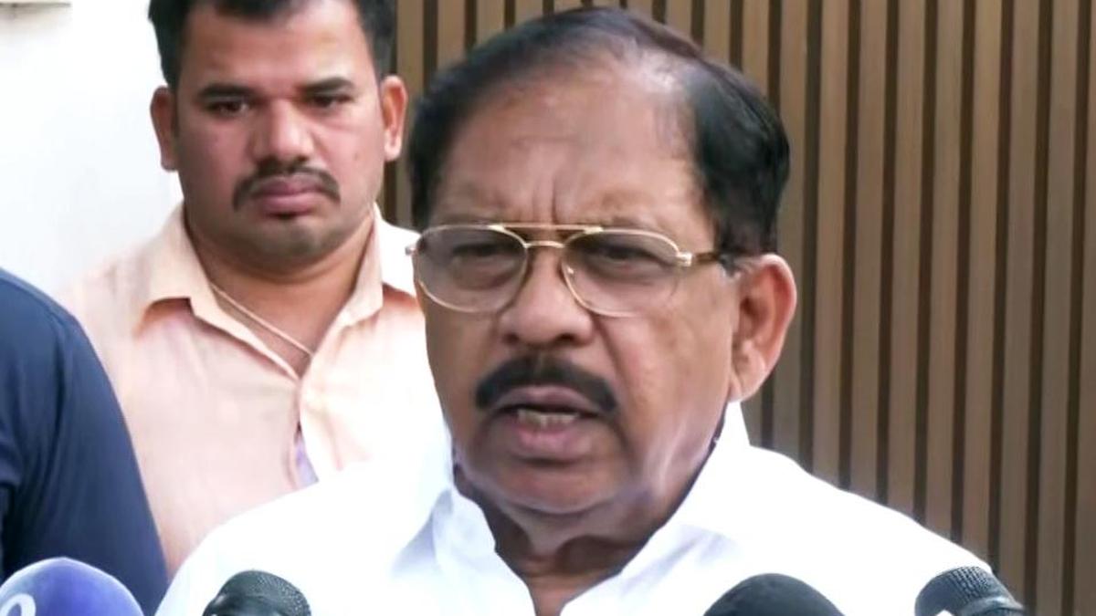 Karnataka Home Minister Dr G. Parameshwara speaks to the media in Bengaluru.