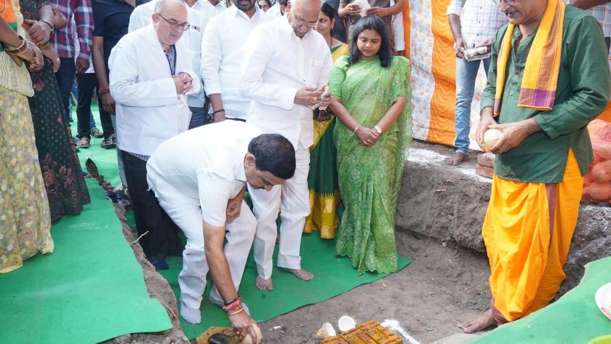 ANDHRA PRADESH, KAKINADA, 07-12-2025:Â Minister of State for Steel and Heavy Industries Bhupathiraju Srinivas Varma performing bhumi puja for dialysis centre in Bhimavaram on Sunday. BY ARRANGEMENT