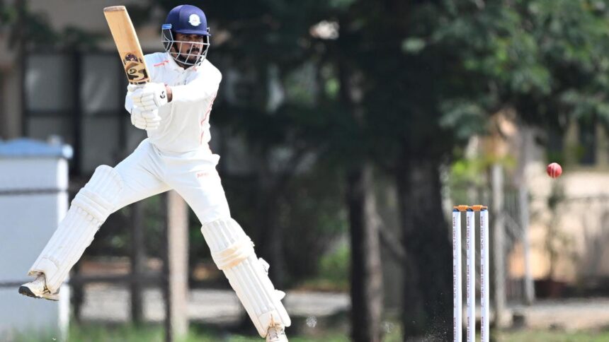 The Hyderabad bowlers, though, stayed patient on a pitch that was offering assistance to the spinners and in the final over before tea, leggie Varun Goud trapped Ajitesh with a quicker delivery.
