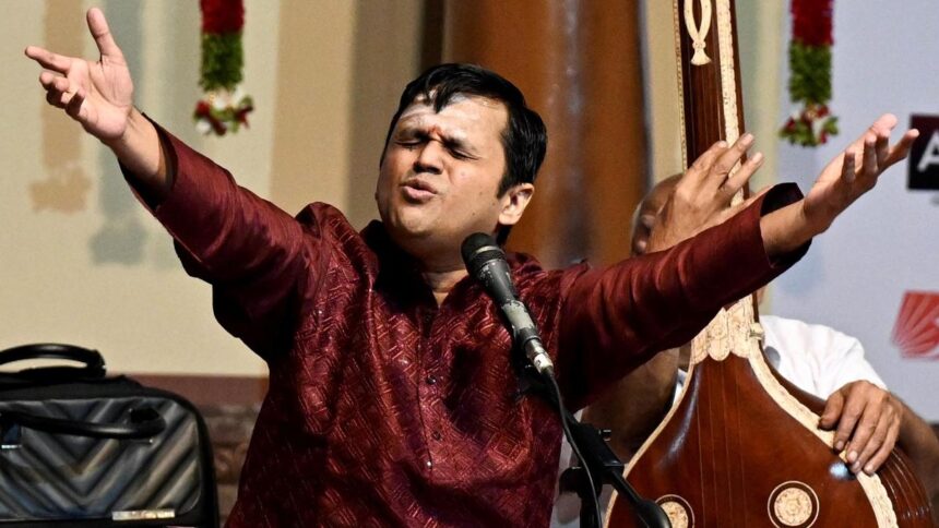 S. Saketharaman performing at Narada Gana Sabha for Kartik Fine Arts’ annual music festival. |…