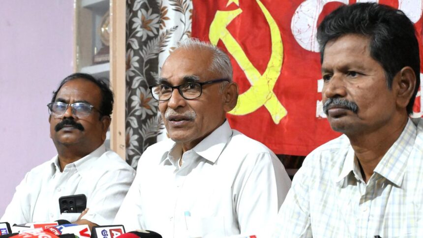 CPI (M) politburo member B.V. Raghavulu addressing a press conference in Visakhapatnam on Monday. | Photo…