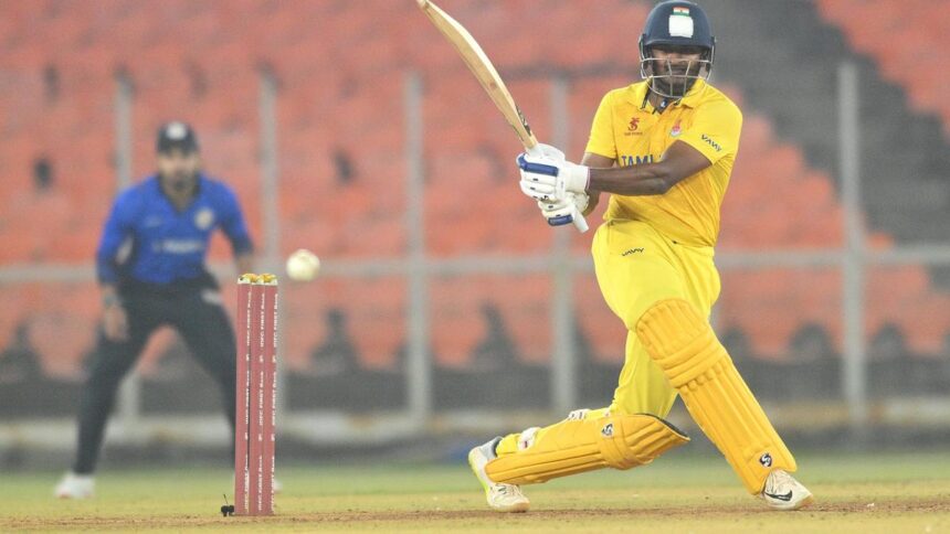 Tamil Nadu opener Sai Sudharsan en route his hundred. | Photo Credit: VIJAY SONEJI Thanks…