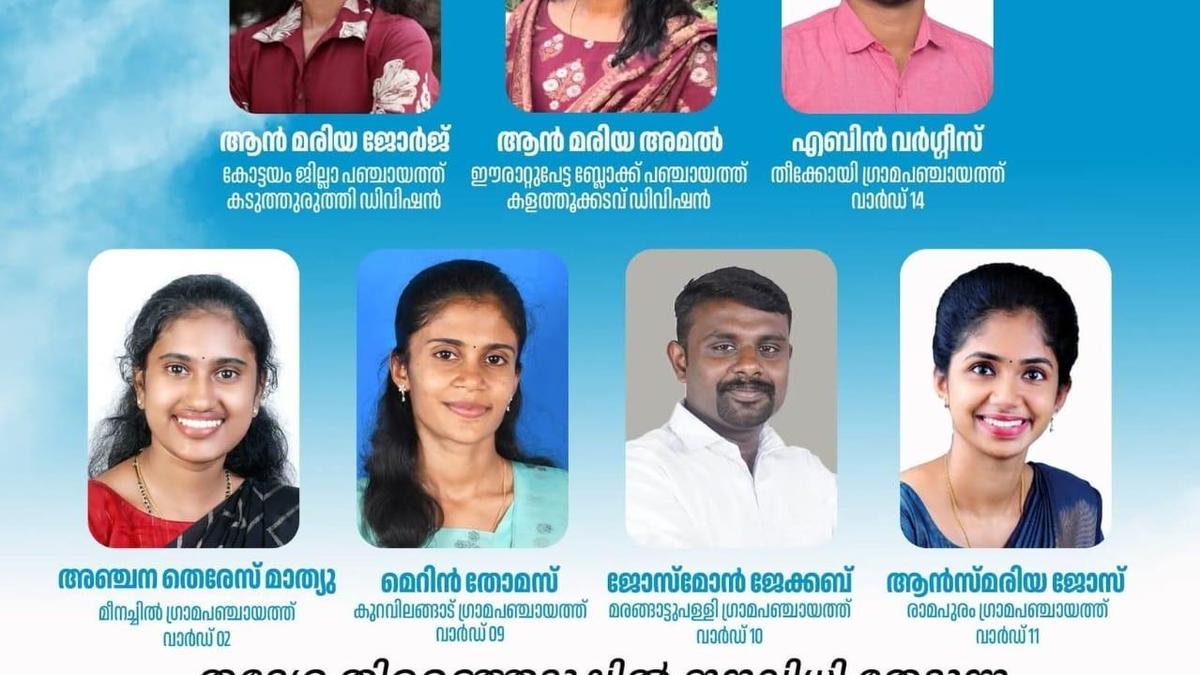 A poster featuring Catholic youths in the Pala diocese who are contesting the local body election