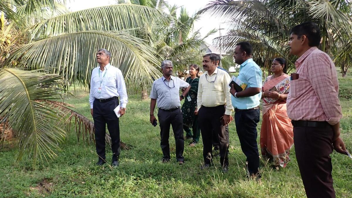 The team consisting of officials and scientists of Union Ministry of Agriculture and Farmers Welfare, Coconut Development Board, Central Plantation Crops Research Institute (CPCRI), Tamil Nadu Agricultural University, and senior officials of Department of Horticulture and Plantation Crops, Government of Tamil Nadu, inspected the crops and took stock of the damages to the plantations.