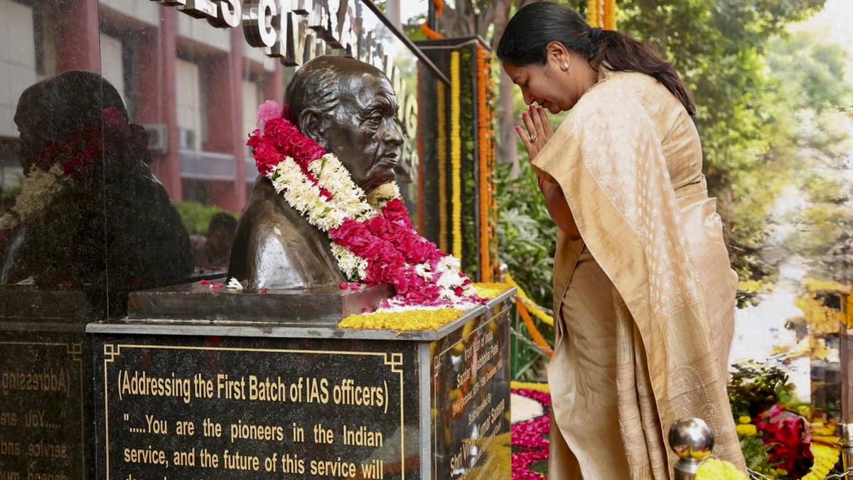Delhi Chief Minister Rekha Gupta paying tributes to the country’s first Home Minister, Sardar Vallabhbhai Patel, on his 150th birth anniversary in New Delhi.