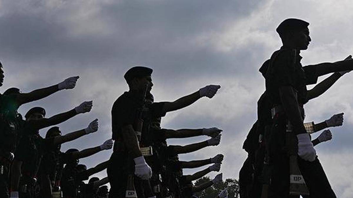 The first batch of personnel recruited under the Agniveer scheme march during a parade in Bengaluru on August 4, 2023.