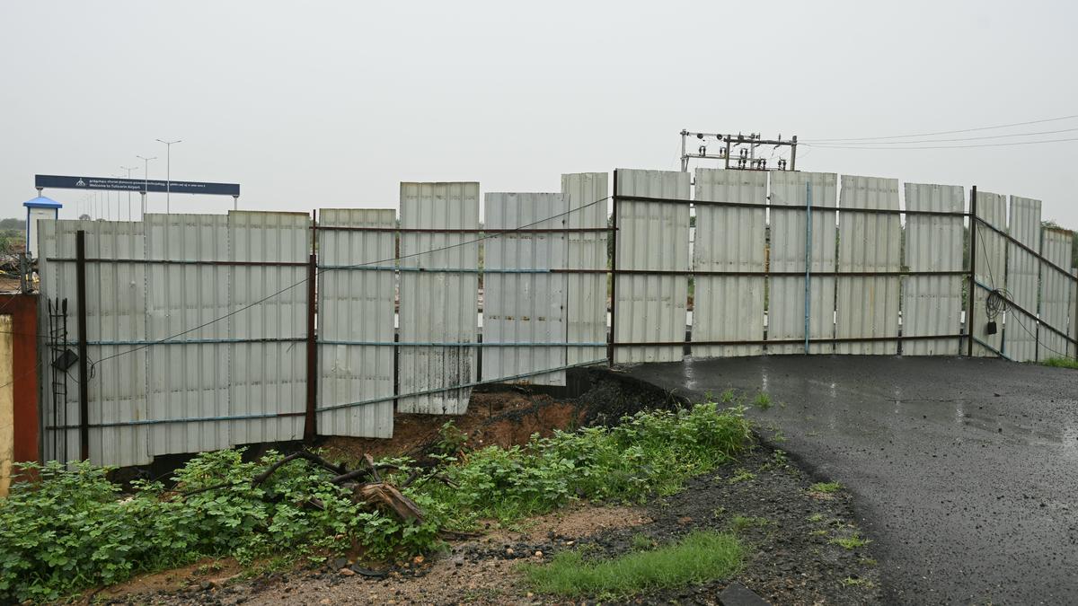 The entrance to Thoothukudi airport’s new terminal is blocked by a metal fence.