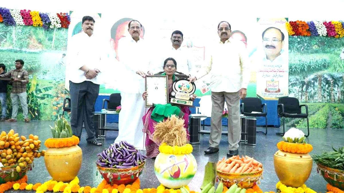 The award was presented to Ms. Lakshmi by former vice president Muppavarapu Venkaiah Naidu and Telangana Agriculture Minister Thummala Nageshwara Rao at a programme organised under the auspices of Swarna Bharati Trust in Hyderabad on Sunday.
