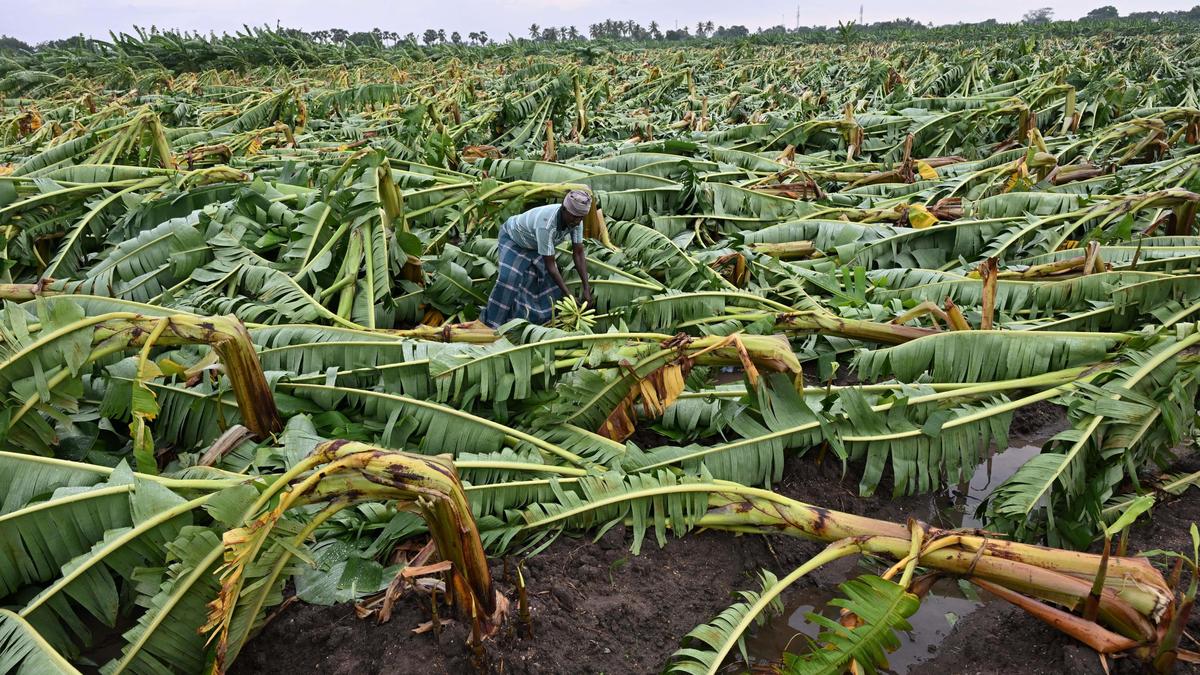 “The nature’s fury has destroyed over 30,000 8-month-old plantains causing hefty loss to farmers of these four villages. We were actually waiting for the harvest around ‘Pongal’ (January 14). However, all our hopes have been dashed now after spending ₹100 per banana,” said a farmer, N. Suresh of Mela Seval, whose two brothers and friends have also suffered huge loss.