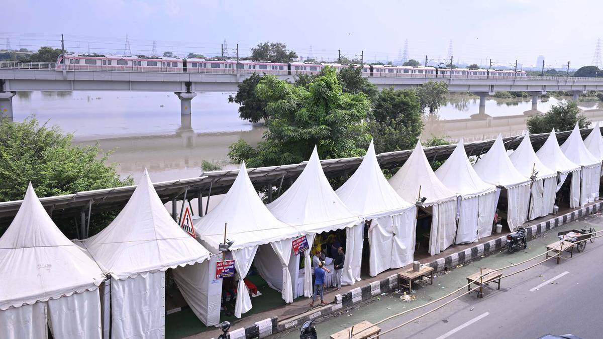 Relief camps sheltering displaced families near the Yamuna river in east Delhi on Friday.