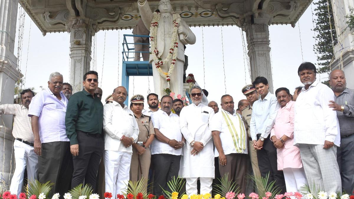 Members of the Legislative Assembly Tanveer Sait, K. Harish Gowda, T.S. Srivatsa, Deputy Commissioner G. Lakshmikanth Reddy, and others made floral offerings to Dr. B.R. Ambedkar’s statue on his Mahaparinirvana Day, in Mysuru on December 6.