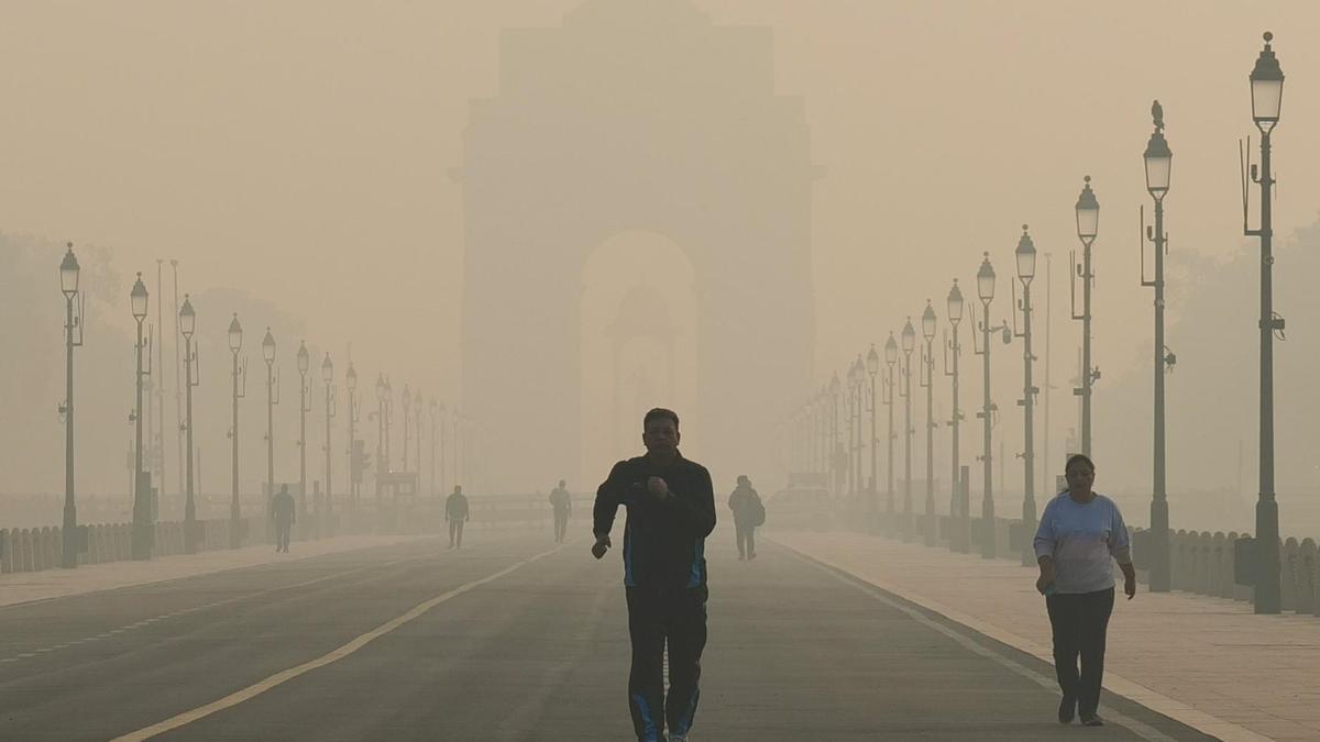 People exercising at Kartavya Path in central Delhi on Wednesday, even as the air quality continued to remain in the ‘severe’ category.