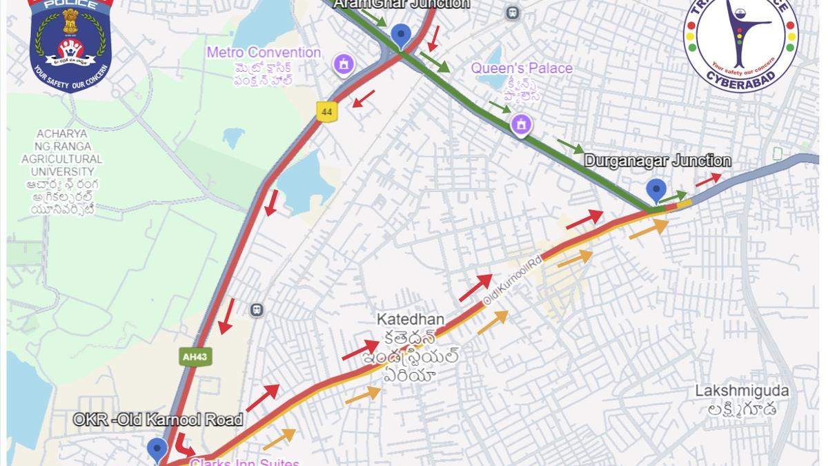Meanwhile, vehicles from Shamshabad will need to take a U-turn at Aramghar towards OKR and then turn left at Durganagar to reach the same destination.