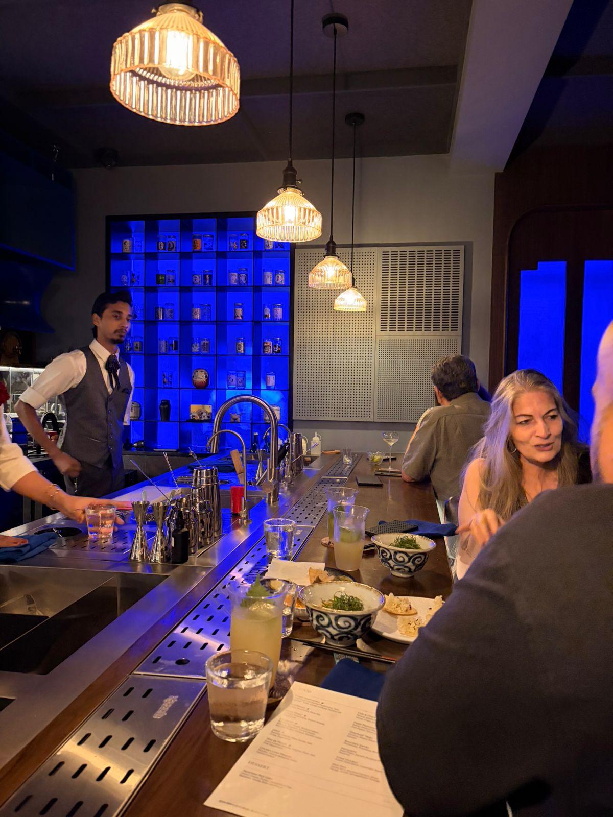 You will find it by following a small blue light above Izumi, the popular Japanese restaurant just off Pali Hill, an understated beacon pointing upstairs to a compact 28-odd-seater space that runs two sittings a night (7.30pm and 9.30pm). The decision to limit capacity is deliberate; Idoru is designed to be experienced rather than merely visited. “Since Izumi doesn’t have a bar, we wanted this space to be that place where you can grab a drink and unwind,” says chef-owner Nooresha Kably. Yet unwinding here is not passive. The room expects you to participate; to listen, taste and notice.