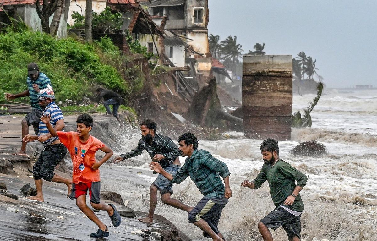 Raging tide: As tidal waves, charged by Cyclone Montha, tear through homes and livelihoods, people scramble for safety in Uppada in Andhra Pradesh.