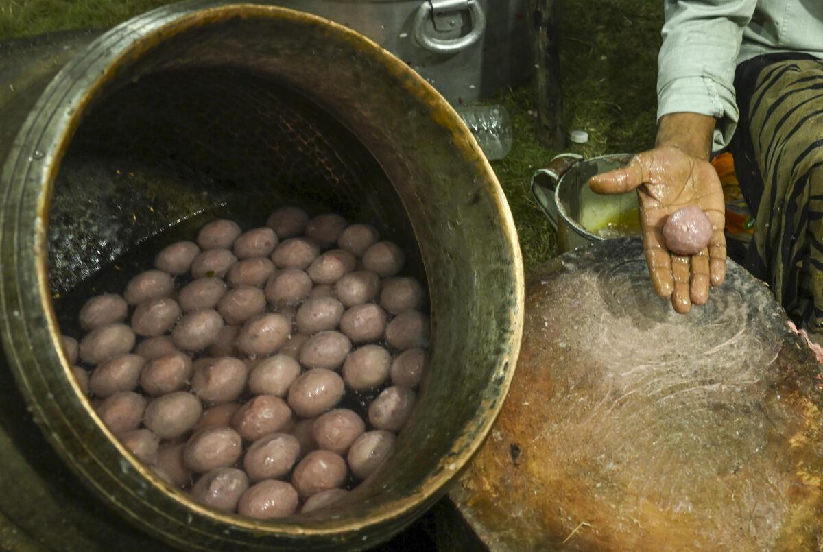 Traditional taste: Meatballs are prepared to go into the Kashmiri Rista, an essential dish of the