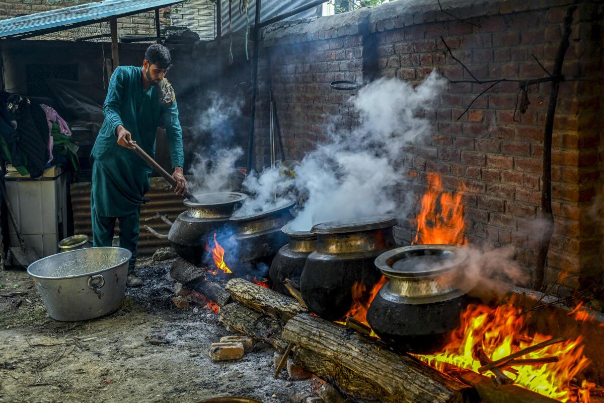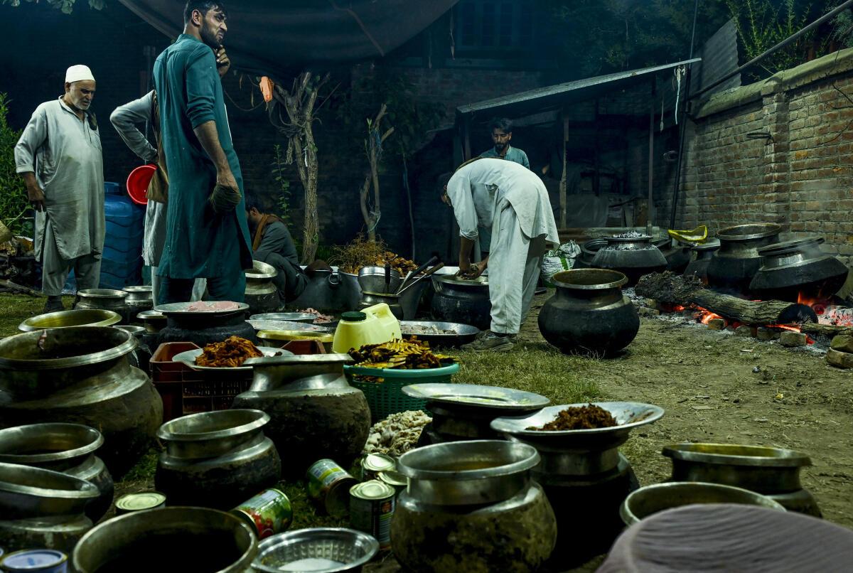 The wazas, or master chefs, have inherited their exceptional culinary skills through generations. They are in high demand during the wedding season, which begins in spring and continues until late autumn in Kashmir.
