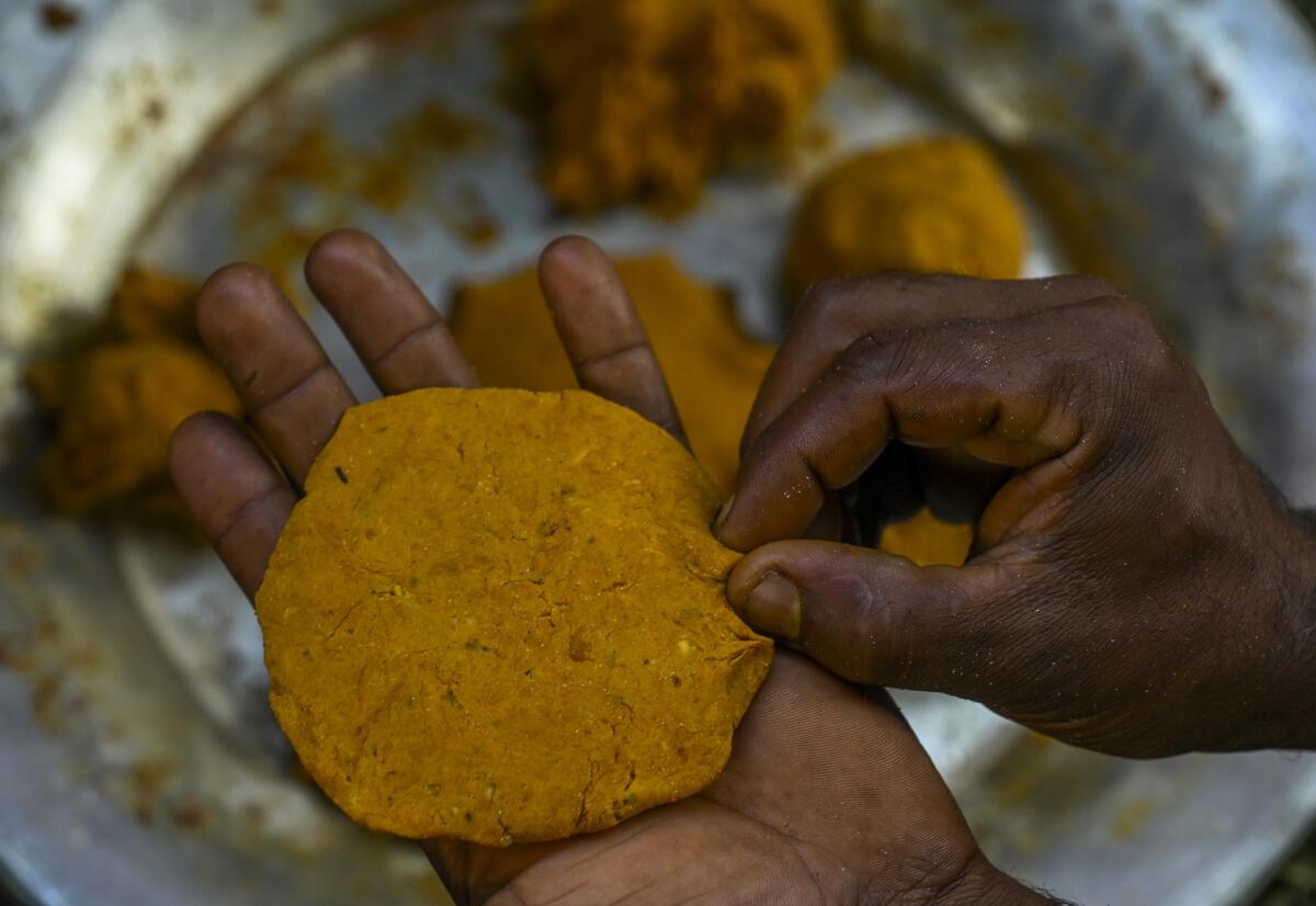 One at a time: In skilled hands, shami kebabs-to-be are carefully