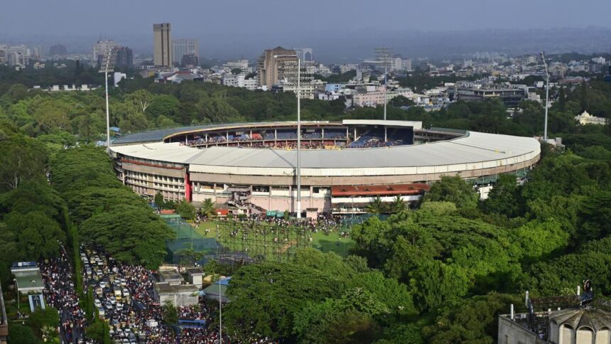 Students along with members of All India Democratic Students Organisation staging a protest in Dharwad…