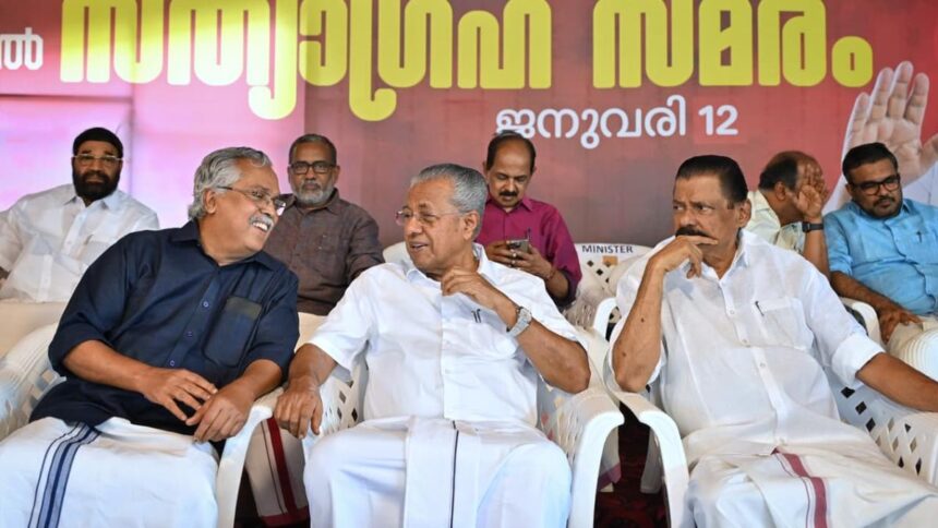 Kerala Chief Minister with other LDF leaders during the protest against the Central government’s policies…