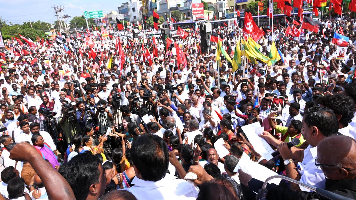 Speakers at a protest meeting organised by INDIA bloc parties here on Friday flayed the Union Government for returning the proposal for Metro Rail project for Madurai and Coimbatore citing lower population.