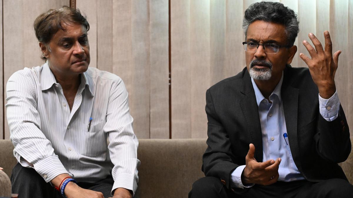 Parag Agarwal and Sethu Vaidyanathan, founders, India Karuna Collaborative, during a conversation held at The Hindu office in Chennai on Tuesday.