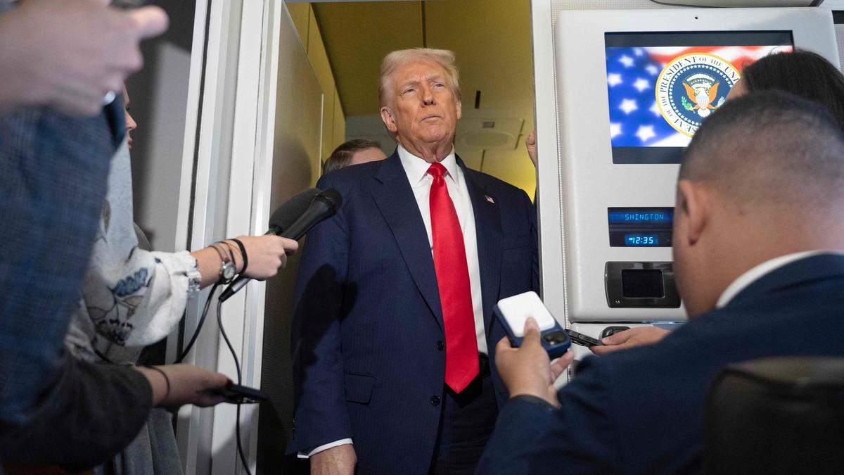 US President Donald Trump speaks to the media aboard Air Force One as he returns to the United States on October 30, 2025.
