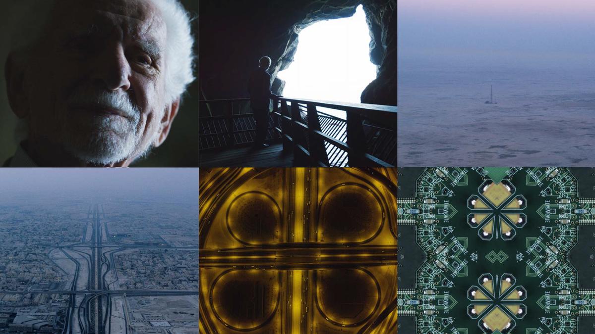 If Past is earthy and corporeal, Present spirals into digital reflection. On the second floor, Doug’s film NEW ERA examines the life of Martin Cooper, the inventor of the mobile phone. Martin, now in his nineties, speaks about the first wireless call he ever made — a moment that quietly altered the destiny of global communication. The film, played within mirrored walls and shifting screens, juxtaposes portraits of the inventor with sweeping natural landscapes, creating a visual dialogue between connection and solitude, invention and mortality. “Everybody from a farmer to a billionaire is connected through this web of accelerating information,” Doug says. “But what does that mean for your physical self? Your life cycle? What’s left when you’re gone?”