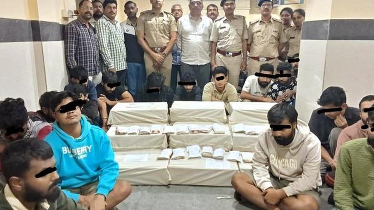 Assistant Commissioner of Police J. Raghu, Inspector of Police B.R. Gaddekar and other officers recovered 38 mobile phones, 37 laptops, three WiFi routers and some documents during the raid.