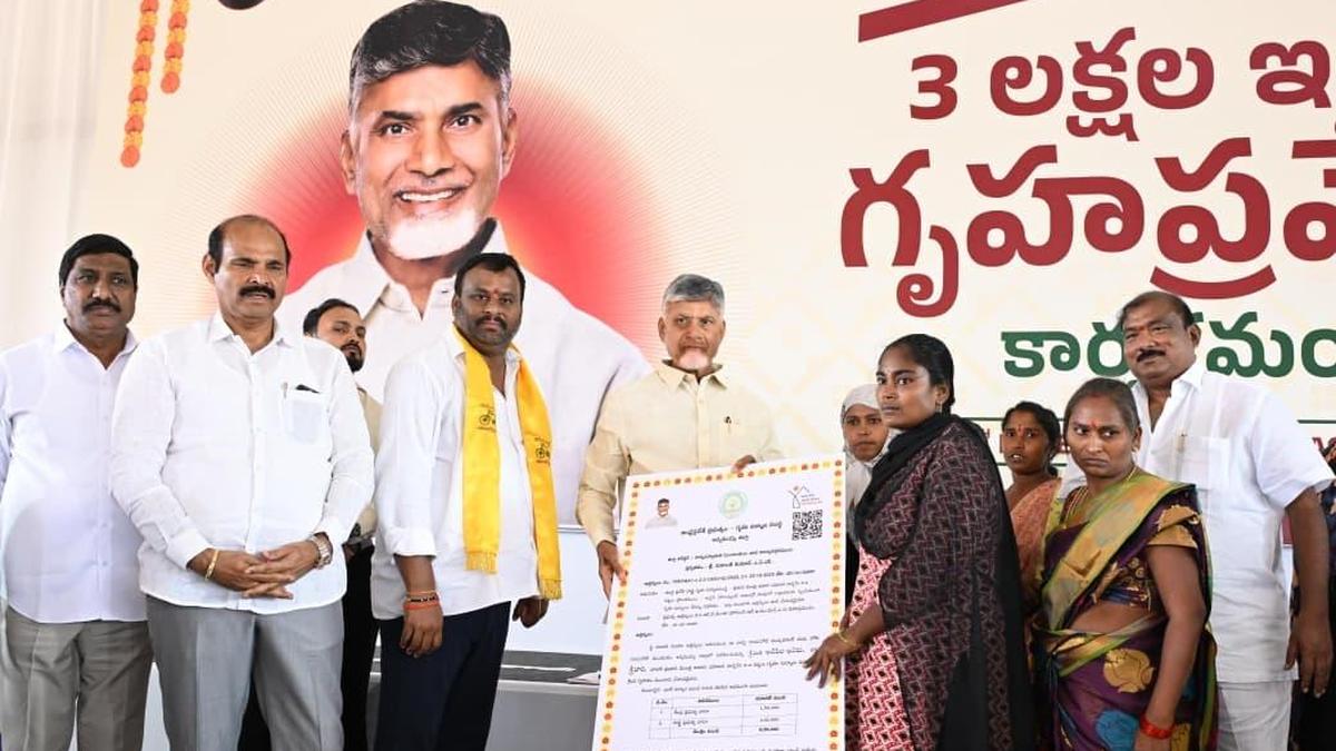 “That is the reason why we are performing gruhapravesams for three lakh houses across the State in a single day under the Pedalandariki Illu (Houses for All the Poor) scheme,” Mr. Naidu said, pledging to complete the construction of the remaining units soon. “As many as 5.9 lakh houses will be handed over to the beneficiaries by 2026,” he said.