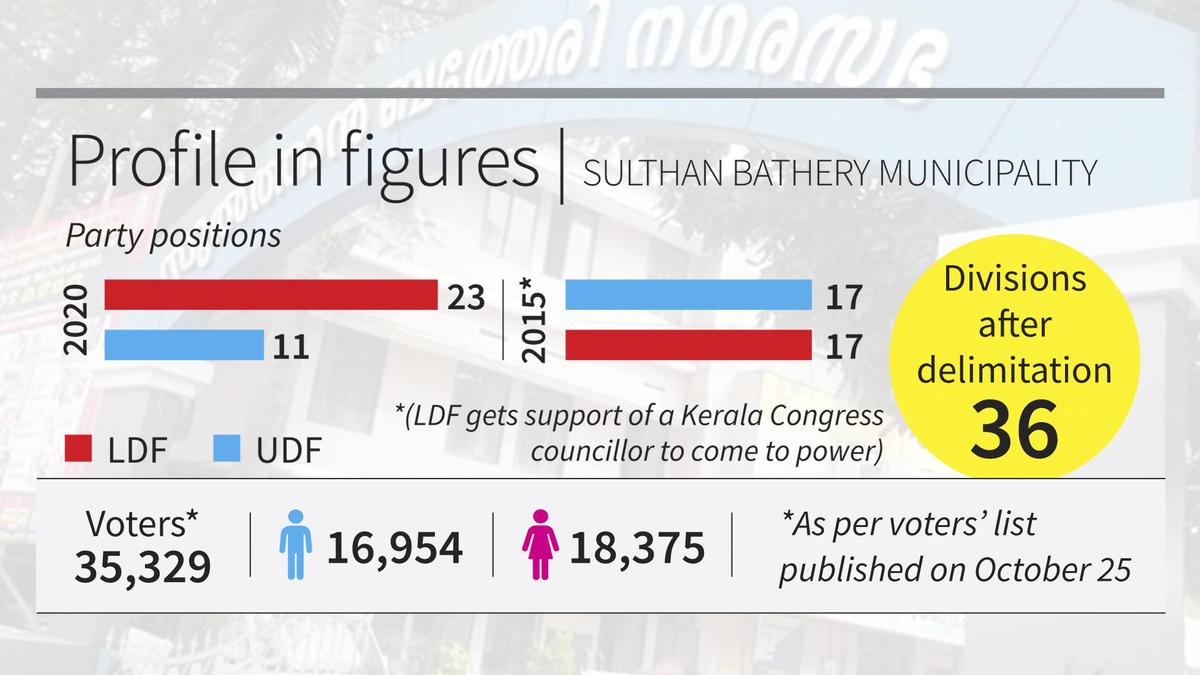 Ever since its inception in 2015, the Left Democratic Front has ruled this upland town. Though it was touch and go in 2015, the LDF asserted its position in 2020. However, Sulthan Bathery has a history of being a United Democratic Front stronghold for over three decades, when it was a panchayath.
