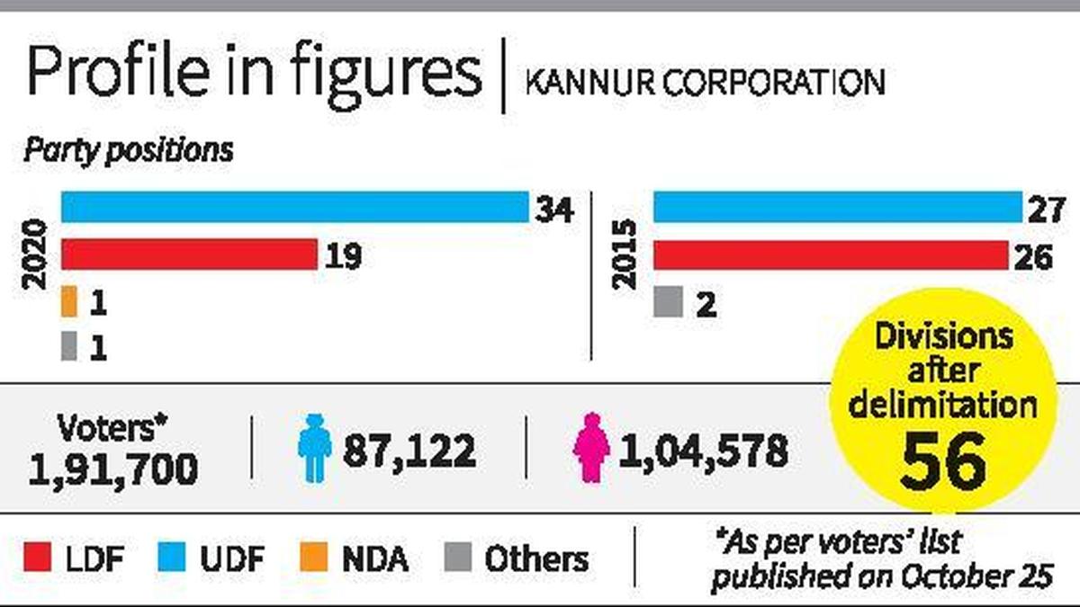 The electoral battle for the 56 wards of the Kannur Corporation is firmly set between the Left Democratic Front (LDF), United Democratic Front (UDF), and the Bharatiya Janata Party (BJP). For the Congress-led UDF, which has for long been in control of the Corporation, the contest is expected to be tougher this time, with multiple rebel candidates from within its own ranks posing a formidable challenge.