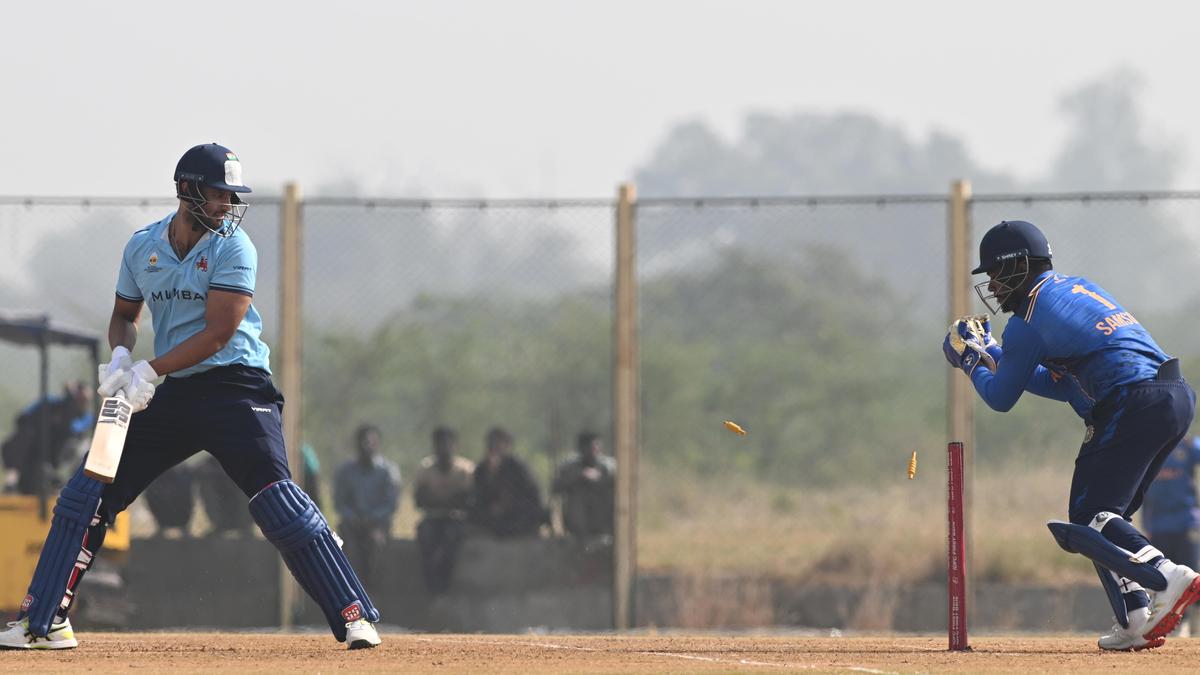The outcome seemed unlikely during Ajinkya Rahane and Sarfaraz Khan’s 80-run alliance for the second wicket, which steadied Mumbai after Sharafuddeen knocked over Ayush Mhatre’s off-stump in the first over.