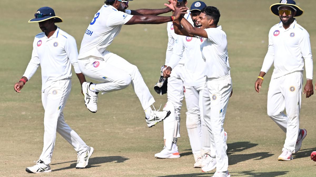 Nidheesh solidified the dominance by pinning Mantri in front two balls after tea. Rishabh Chouhan played some attractive strokes, but was dismissed by a reflex catch from Ahammed Imran at short leg off B. Aparajith.