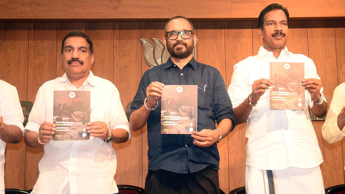 Former State president of Bharatiya Janata Party K. Surendran and senior party leaders releasing the BJP chargesheet against Kozhikode Corporation on December 6.