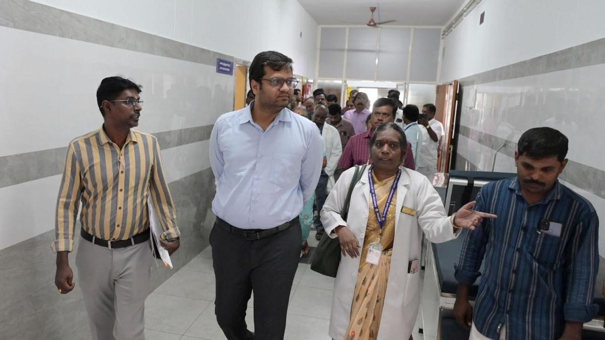 Tiruch Collector V. Saravanan inspects the new maternity and childcare centre at the District Headquarters Government Hospital in Manapparai on Wednesday.