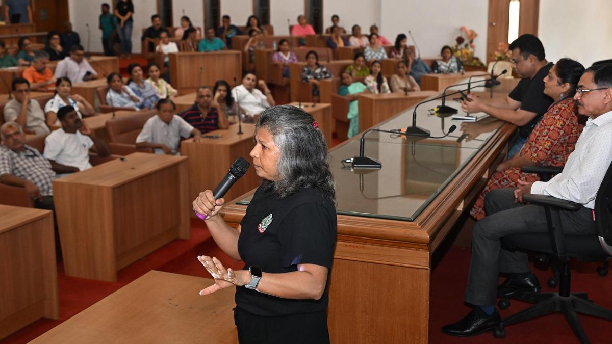 Dog lover Mamata Rao from Puttur speaking about the problems faced by people feeding dogs in Puttur and other parts of Dakshina Kannada during the meeting of dog feeders in Mangaluru on Sunday.